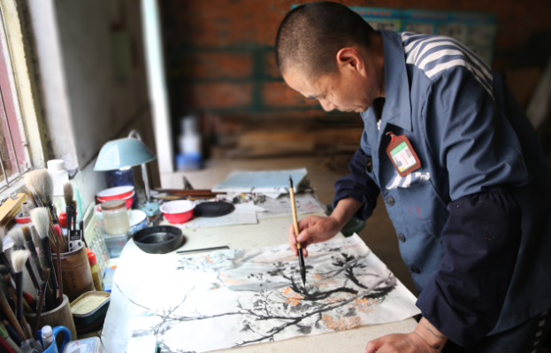 心静了,天分和灵感才会应运而生。黄某文化程度不高,却颇有几分灵气。七监区副教导员王金荣无意中发现他有绘画天分,就和监区其他民警一起给他买来了《绘画技法》等专业书籍,还有宣纸、笔墨等绘画材料。